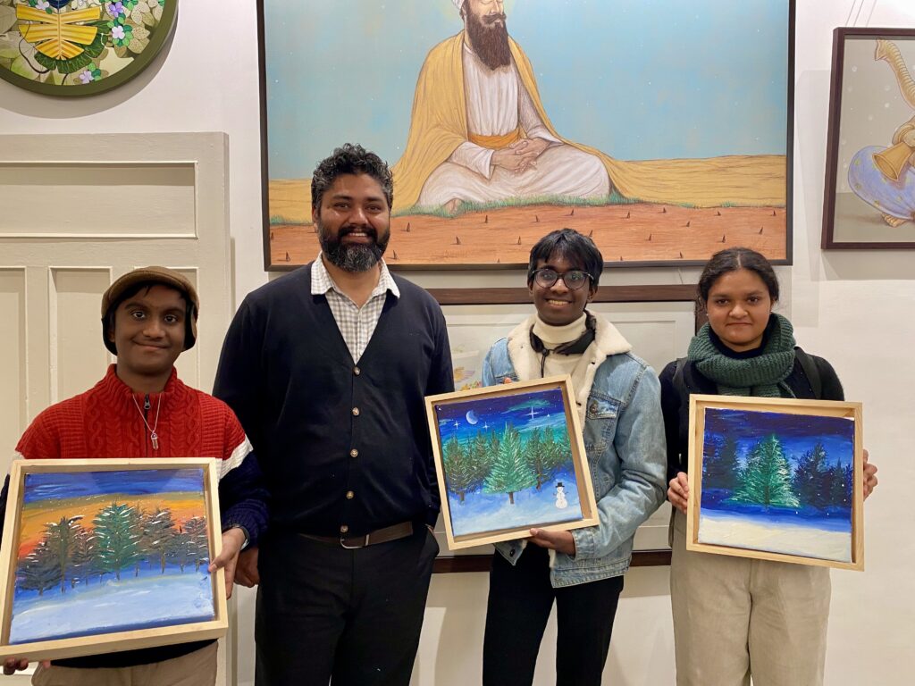 Recently, this Saturday, I went to a painting worship that was held in Chandigarh by AIM Gallery and Dr. Pardeep Singh. He is a painter based in Chandigarh and was born in Punjab. The event was held on 20th December. We left home early so that we could reach around 10 minutes before the event started. We had also invited one of our friends from the Youth Camp, who also enjoys painting.
